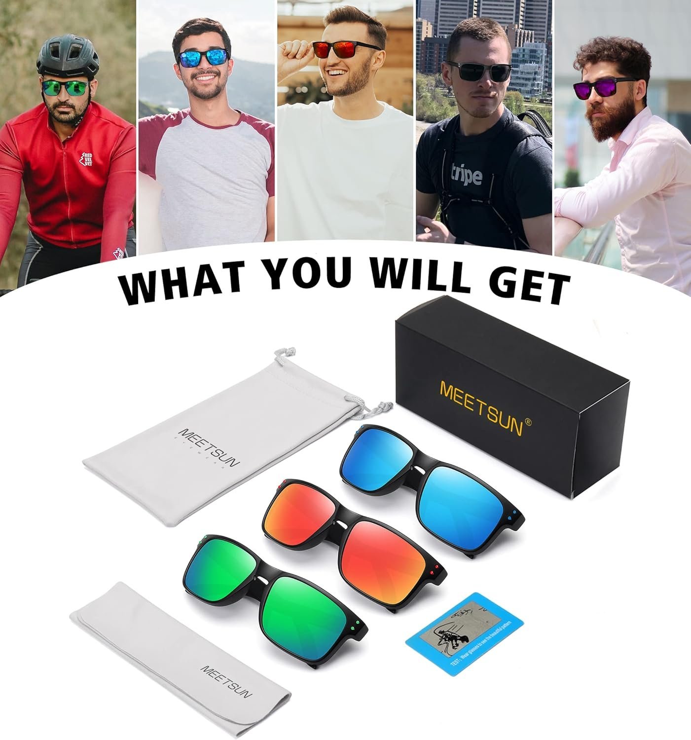 3-Pack Rectangle Sunglasses – Black Frame, Mirrored Lenses