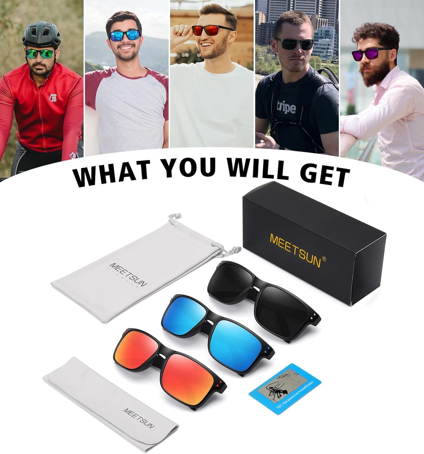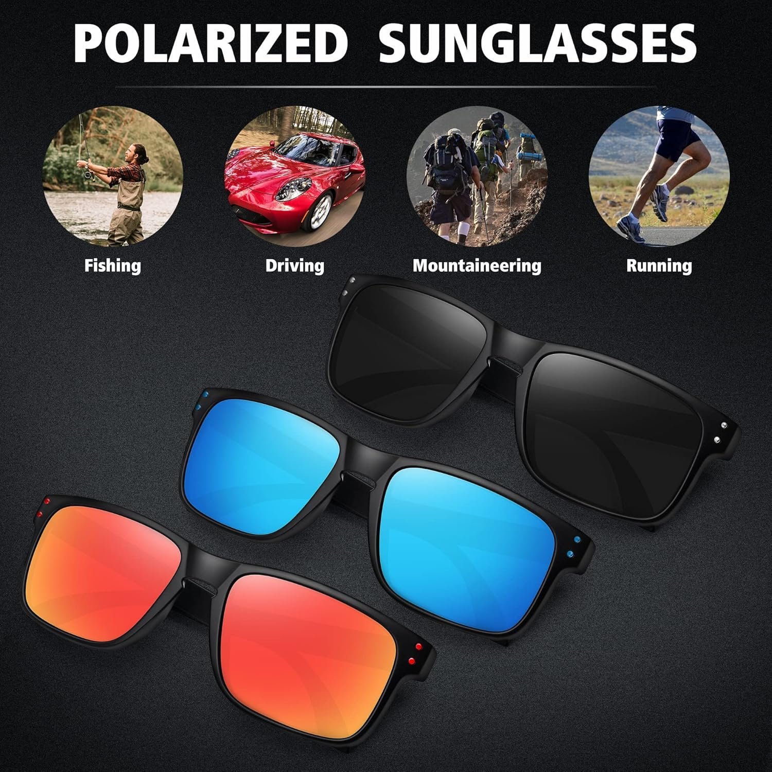3-Pack Rectangle Sunglasses – Black Mirrored Lenses
