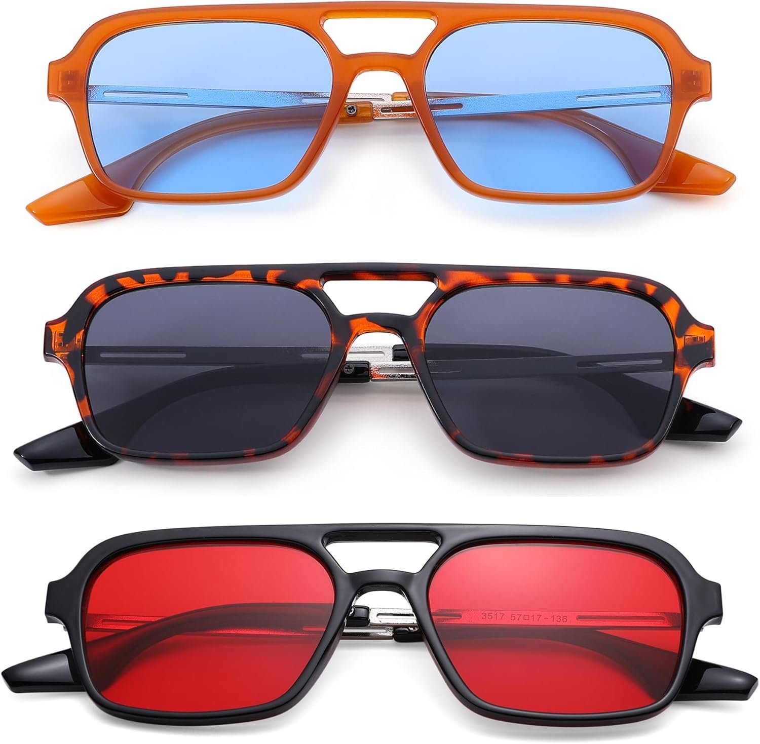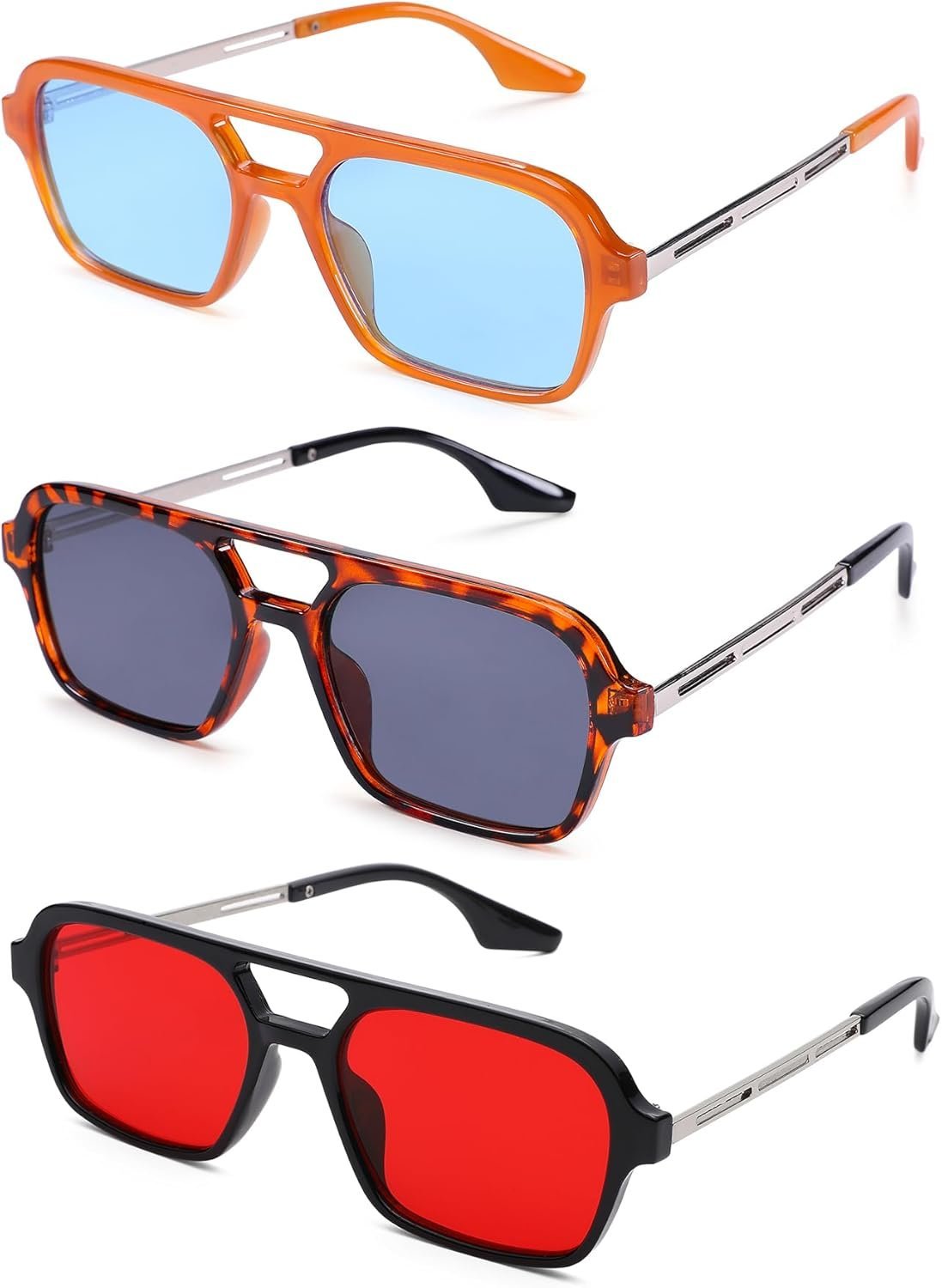 3-Pack Rectangle Sunglasses – Orange, Tortoise, Black Frames