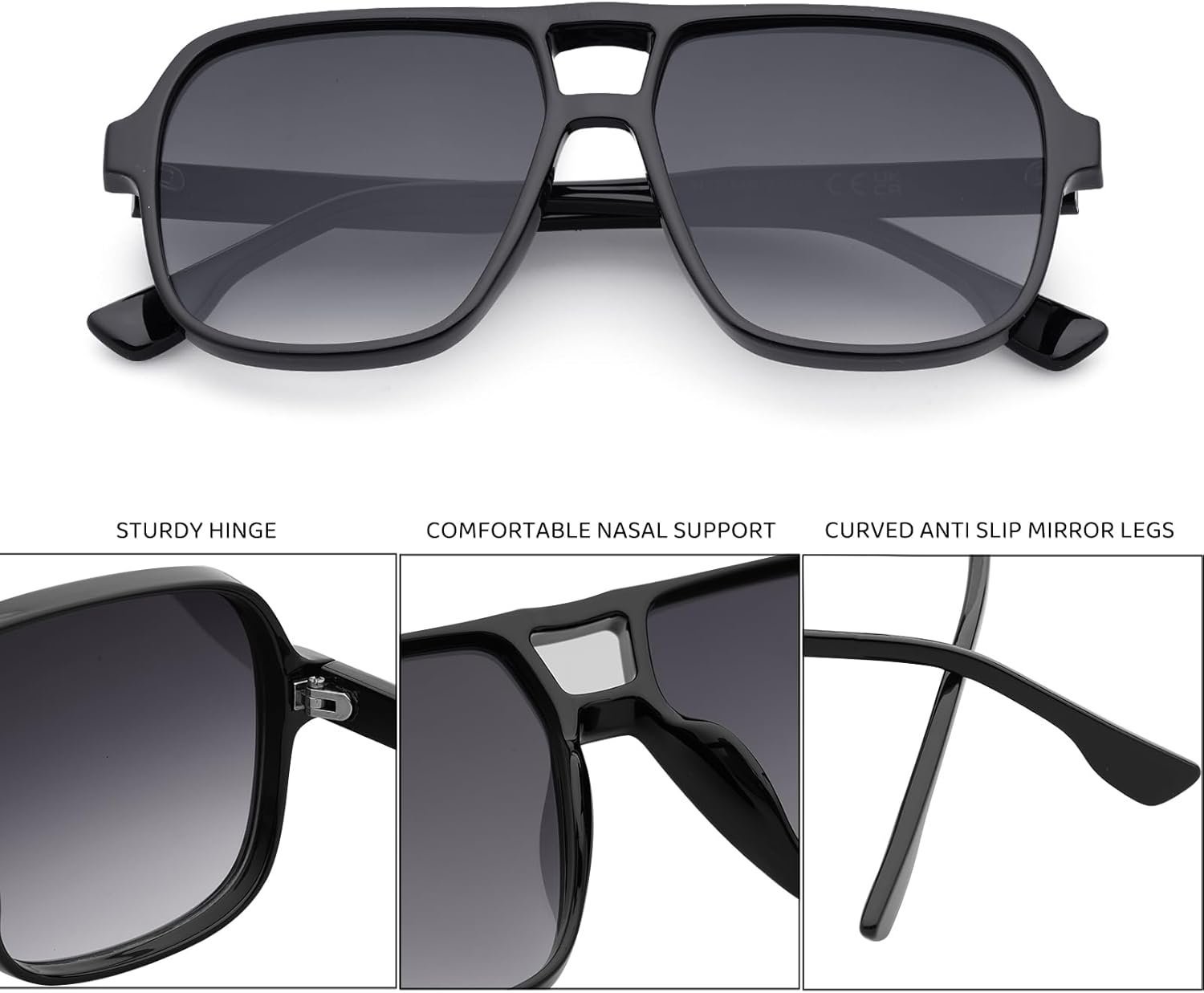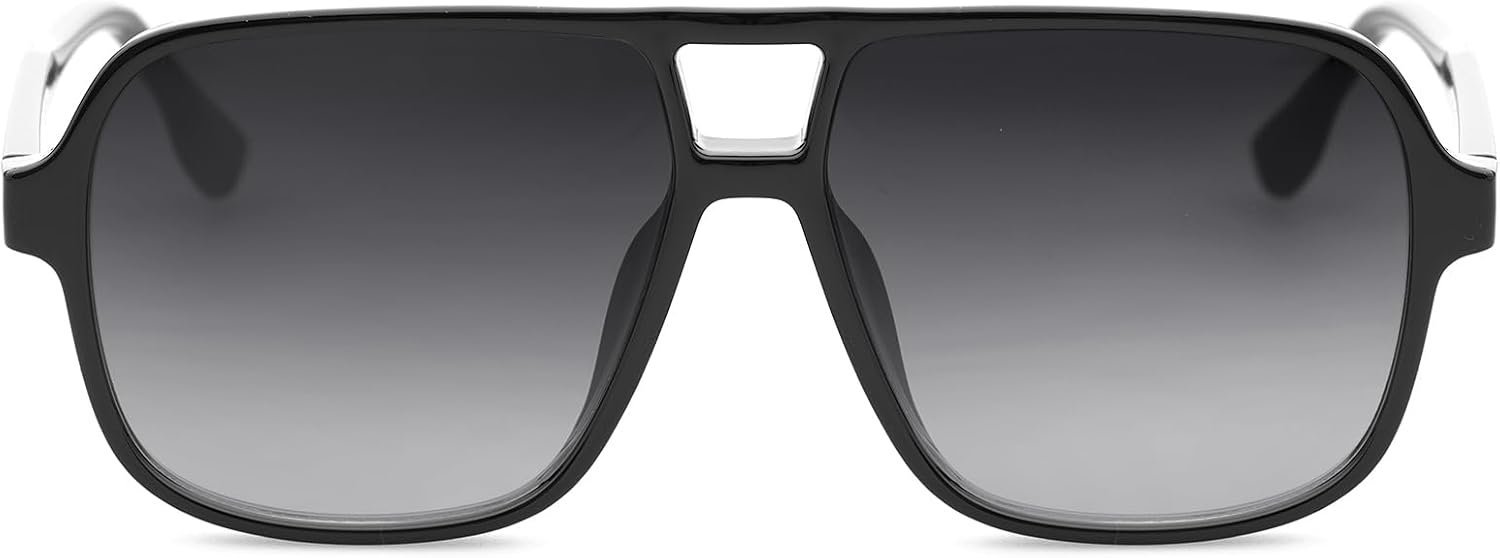 Oversized Square Sunglasses – Black Frame, Gray Gradient