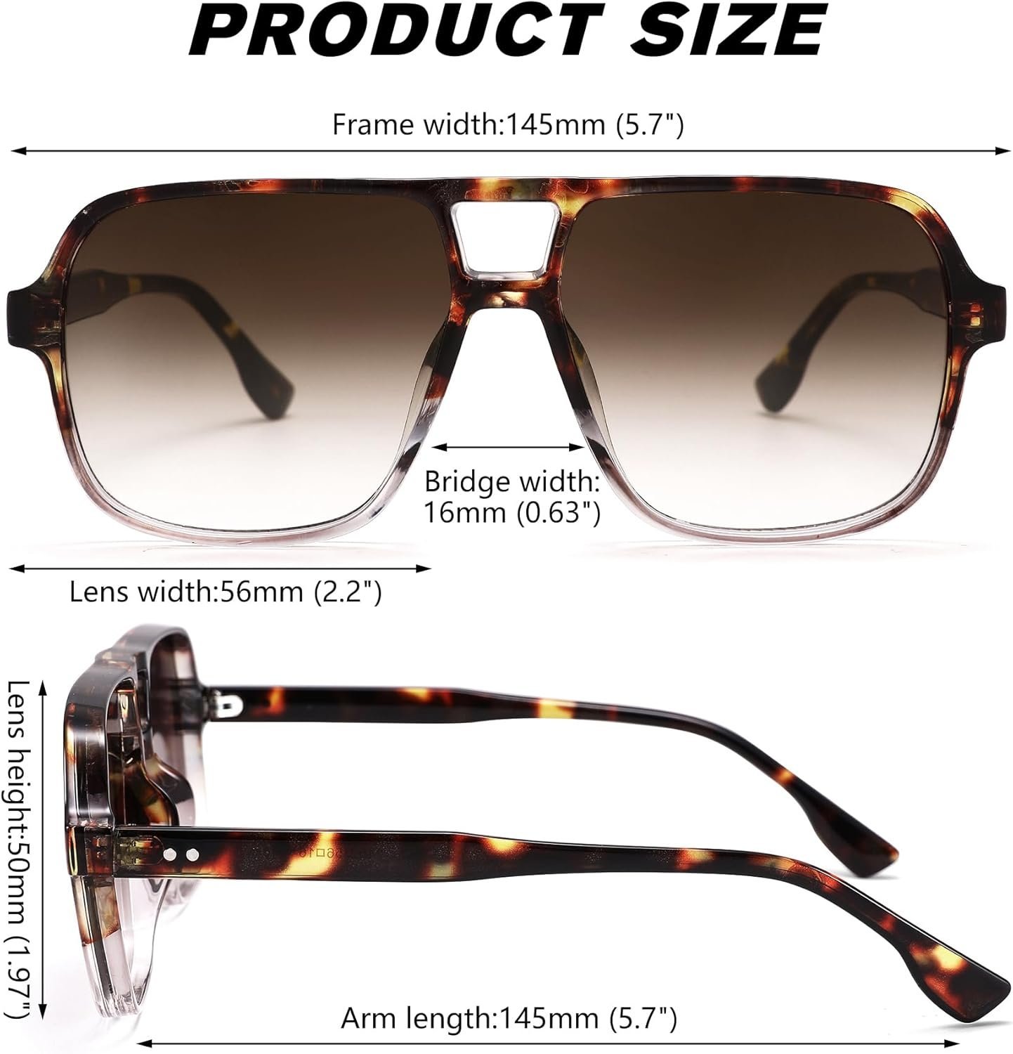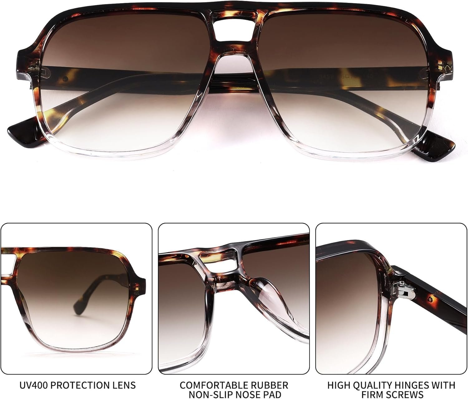 Oversized Square Sunglasses – Tortoise Frame, Brown Gradient