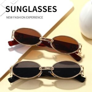 Round Metal Sunglasses – Gold Frame, Blue Mirrored