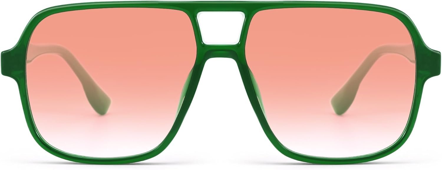 Square Sunglasses Green Frame Pink Gradient